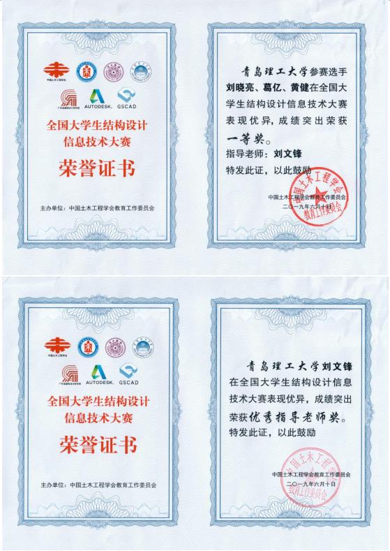 本届赛题内容主要为基于BIM技术的某30层高层装配式剪力墙结构的设计,赛题贴近现实,复杂程度较高。在长达半年的备赛期间,参赛队员们认真研读比赛要求,相互交流探讨,积极投入备赛,以满腔的热情克服种种困难,在指导老师的悉心指导下,运用软件进行建模计算,并不断对模型进行修改深化,展现了土木学子的良好精神风貌和专业素养,切实培养了学生将专业理论知识与实践相结合的能力。最终,365完美土敦木华队(队员:刘晓亮、葛亿、黄健,指导教师:刘文锋),QUT结构设计小队(队员:张炜、赵嘉慧、李淑堃,指导教师:刘文锋),头号玩家队(队员:华兴尚、赵润华、陈锟,指导教师:周东明),QUT结构信息小队(队员:胡孔知、李波澳、李金炜,指导教师:刘文锋)分别获得一等奖、二等奖、三等奖及优秀奖,刘文锋获评优秀指导教师。其中,土木敦华队参赛作品被主办方选作优秀作品在其官网和腾讯视频上展示,只有12支队伍入选。
