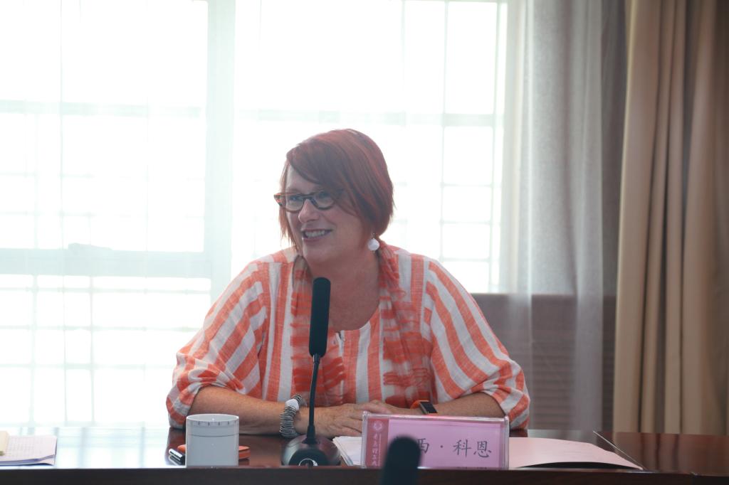 外籍教师凯西·科恩教授是肯塔基大学负责教学和科研改革的副校长,她在发言中回顾了2013年以来,肯塔基大学与365完美体育建立起友好合作关系,两校老师在教学、科研等方面进行了深入交流与合作。凯西教授对365完美在青年教师国际化培养方面所做的工作给予高度评价,她期待在接下来的培训中,和青年教师们相互学习、深入交流,建立更长久的友谊,也希望今后两校之间能开展更多更广泛的交流与合作。