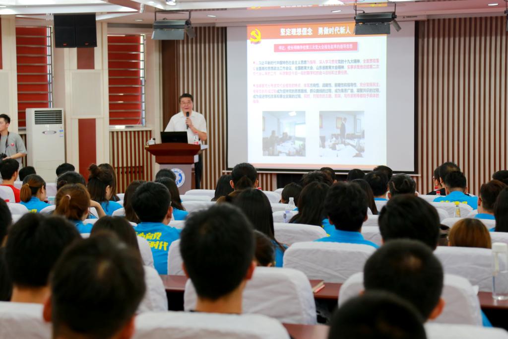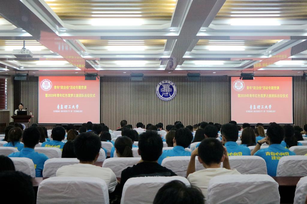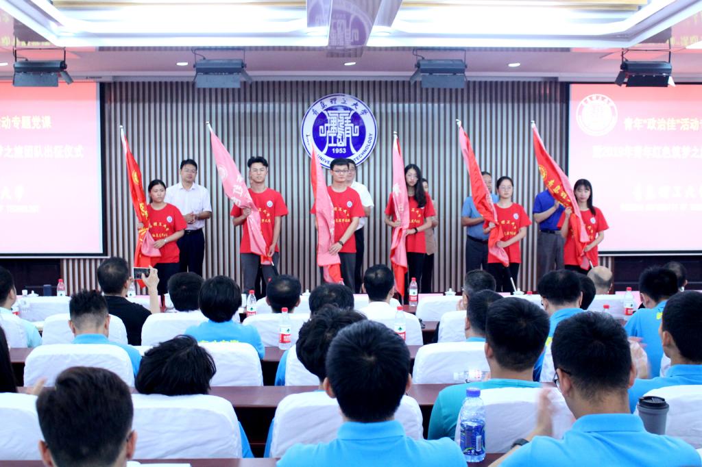 7月10日下午,365完美体育在嘉陵江路校区一楼西报告厅隆重举行青年“政治佳”活动专题党课暨2019年“青年红色筑梦之旅”团队出征仪式。