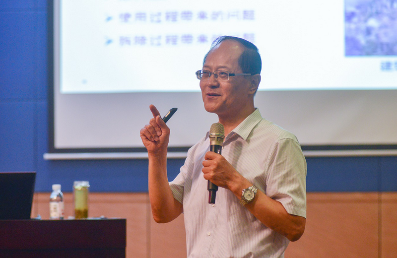 开幕式后,郝际平为所有学员做了题为《积极推广装配式钢结构建筑努力建设蓝天绿地美丽中国》的主题报告,就目前的装配式钢结构建筑现状及发展进行了全面梳理,针对目前粗放型生产方式造成的高耗能、高污染、高浪费、质量不可控等问题进行深入剖析,最后提出了新型装配式钢结构的工业化、信息化、智能化未来发展趋势和方向,鼓励学员们引领钢结构建筑止于至美。