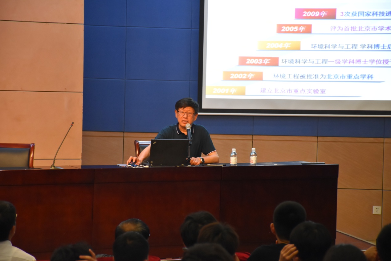 报告分两个部分,第一部分是“城市污水生物脱氮除磷新技术与团队简介“,彭永臻院士为大家介绍了他带领的研究团队一路的成长以及取得的丰硕成果;接下来介绍了城市污水脱氮除磷领域的国际前沿及研究热点,并为大家讲解了新型污泥双回流AOA工艺的原理与最新研究进展。彭永臻院士讲解的风趣幽默、生动形象,报告厅不时爆发出阵阵掌声。报告结束后,彭永臻院士与师生们进行了互动交流,在场学生踊跃提问,不论是科研上的疑问还是考研方面的困惑,彭永臻院士均耐心地为同学们答疑解惑,在座师生受益匪浅。