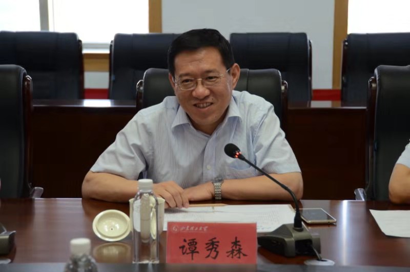 谭秀森一行与山东理工大学党委书记吕传毅、副校长王立斌及相关部门负责同志进行了座谈交流。