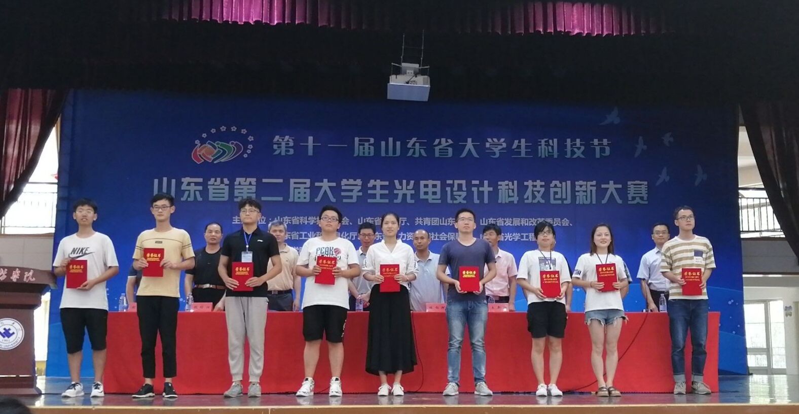2019年7月19至21日,山东省第二届大学生科技节光电设计科技创新大赛在潍坊学院举办。本次大赛是由山东科学技术协会、山东省教育厅、共青团山东省委员会、山东省发展和改革委员会、山东省经济和信息化委员会、山东省人力资源和社会保障厅、山东省光学工程学会共同主办、潍坊学院物理与光电工程学院承办。由潍坊学院承办的大学生光电设计科技创新大赛活动,是山东省大学生科技节的核心板块之一。我理学院学生组建了6支队伍参加了大赛的实物展示项目和PPT答辩项目,取得了一等奖2项,二等奖3项,三等奖1项的优异成绩,其中两个作品被推为光电设计科技创新大赛山东赛区优秀作品(本次大赛总共推出15个优秀项目,占所有参赛项目的15%左右),将代表山东省参加由南京理工大学于7月22至23日间举办的全国第七届大学生光电设计大赛东部区赛,争取下一步进入全国总决赛。