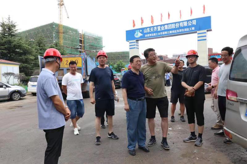 7月29日一早,校党委书记王亚军、校长谭秀森冒着细雨、踏着泥泞,分两路深入嘉陵江路校区,靠前指挥、调度推进新校区二期工程搬迁启用工作。校党委副书记杨兴昌,党委常委、副校长齐德义、王伟陪同调研,城发投资集团有限公司、项目建设总包单位、食堂托管餐饮管理公司相关负责人以及学校有关职能部门负责同志参加调研活动。