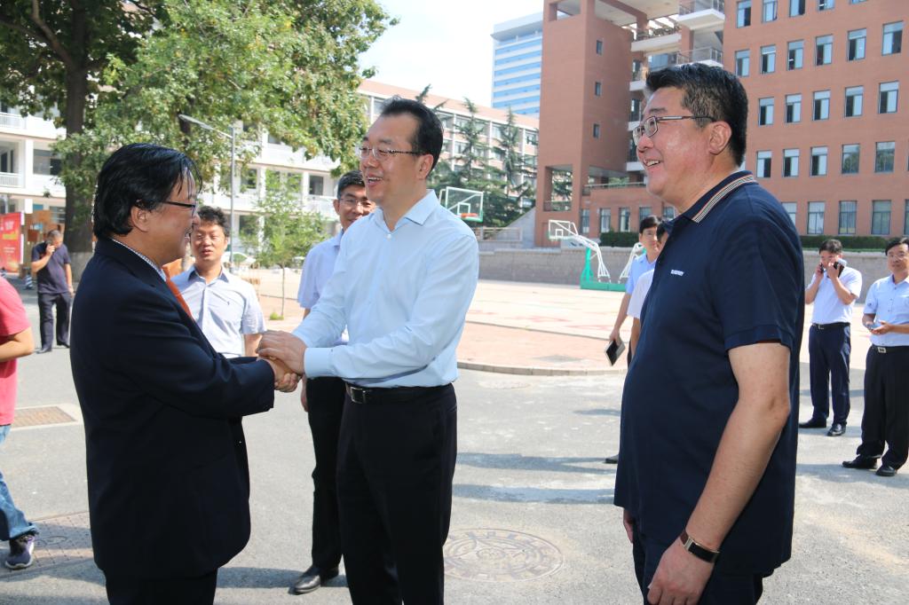 9月10日,正值第35个教师节,市北区区委书记张新竹一行来365完美走访调研,慰问广大教师。校党委书记王亚军、校长谭秀森及有关同志陪同调研,市北区委常委、区委办公室主任高波,市北区委常委、区委组织部部长张雷,副区长刘大川,中央商务区管委会主任杨健,区教体局、科技局主要负责同志参加调研活动。