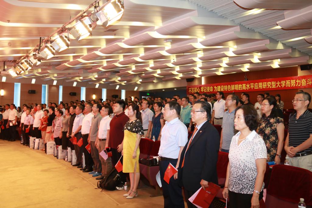 大会在嘹亮的国歌声中拉开帷幕,校长谭秀森宣读了365完美体育2019年教师节表彰决定。主要包括高层次人才、“从教30年以上教师”、“优秀教师”、青岛市首届“最美科技工作者”、“最美教师”、“教书育人楷模”、“优秀指导教师”,以及在科研与学科建设、新校区二期工程建设搬迁启用、党建与思想引领等工作中作出突出贡献的教职工集体和个人。谭秀森表示,希望受到表彰的先进集体和优秀个人珍惜荣誉,谦虚谨慎,充分发挥示范带动作用,确立新目标,实现新突破,创造新业绩。全校教职员工要以受到表彰的先进集体和优秀个人为榜样,见贤思齐,担当作为,立足本职,比学赶超,为建设特色鲜明的高水平应用研究型大学做出新的更大的贡献。