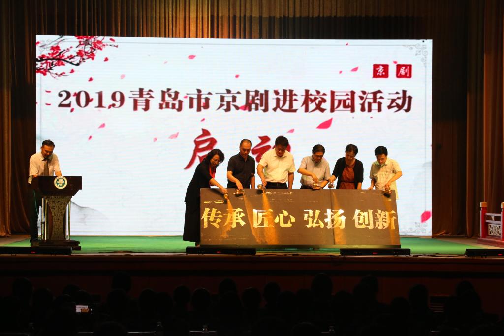 仪式由青岛市京剧院院长张克岱主持,青岛市文化和旅游局副局长王琳致欢迎辞。活动组织和协办单位领导共同启动此次“2019青岛市京剧进校园”活动。