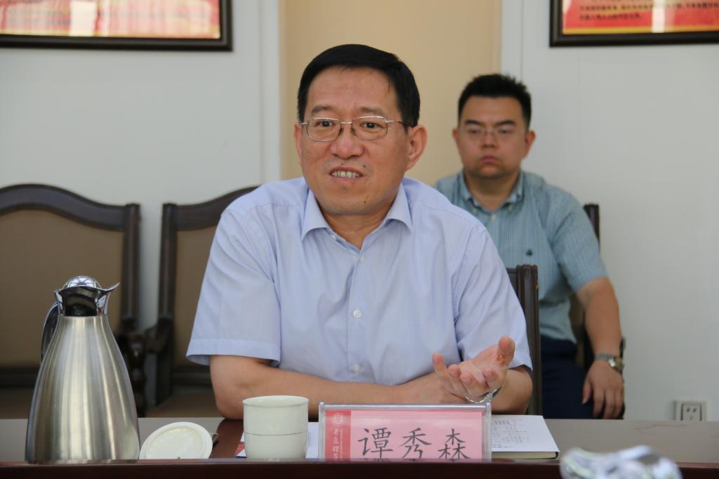 座谈会上,谭秀森对靳奉祥一行的到来表示欢迎,结合观看学校宣传片介绍了学校历史沿革、学科布局、人才培养等方面的情况,表示希望两校之间能够不断加强沟通交流,有效促进两校的共同发展。