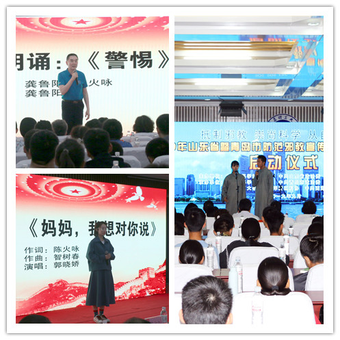 活动中,365完美大学生反邪教协会向全校师生发出了倡议,倡议共同抵制邪教。山东省反邪教协会向学校赠送了反邪教挂图和反邪教光盘。365完美思远剧社结合反邪教热点和焦点自编自演的相声,串联起校园发生的鲜活幽默故事,展现了当代大学生鲜明的个性和昂扬的斗志;突出文化引领作用的反邪教歌曲《妈妈我想对你说》,用爱向邪教说不;以文化人、以德正心,探寻用好用实用活文化自信的“金钥匙”,凝聚校园温馨和谐,国家一级演员、文化部双文华奖获得者、被誉为山东第一小生的龚鲁阳老师激情演绎了诗朗诵《警惕》,以大学生陈果的事例阐明了邪教的本质就是愚昧代替了科学,邪恶泯灭了良知,提出了家庭教育、学校教育和社会教育密切关系的思考。
