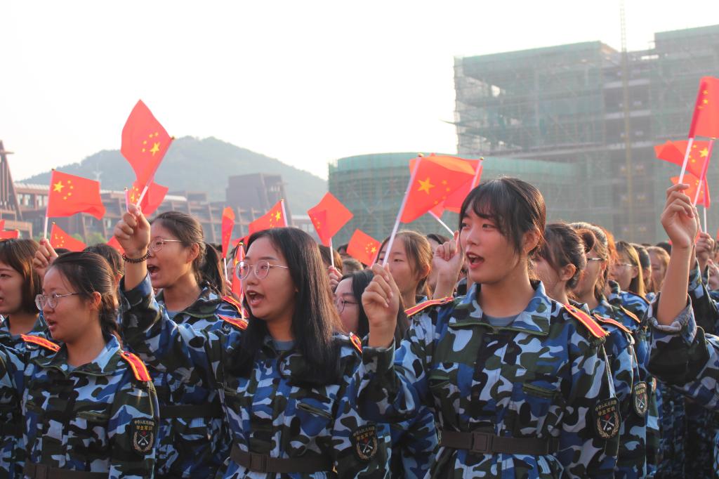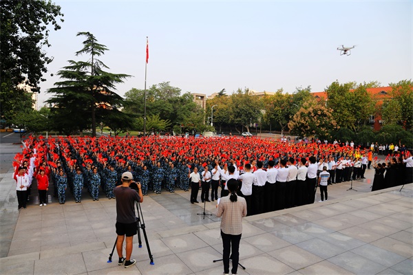 “五星红旗迎风飘扬,胜利歌声多么嘹亮!歌唱我们亲爱的祖国,从今走向繁荣富强……”全体师生齐声唱响《歌唱祖国》,用歌声响亮回答“爱国三问”。全体师生沉浸在为祖国自豪、为祖国礼赞的热烈氛围,“祖国,我爱你”“祝福祖国,繁荣昌盛”的呼声响彻校园,理工校园涌动起一片红色的海洋、赤子的心声、磅礴的力量。