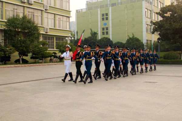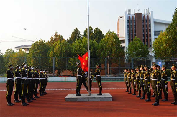 “向国旗敬礼!”嘹亮的口令响起,国旗护卫队迈着铿锵有力的步伐护送国旗入场。伴随着振奋激昂的《义勇军进行曲》,擎旗手将鲜艳的五星红旗抛向天空,国旗迎着朝阳冉冉升起,迎风飘扬。全体师生肃立挺拔,向国旗行注目礼,齐唱国歌,追思烈士功绩、弘扬烈士精神,牢记初心如炬、凝聚前行力量。