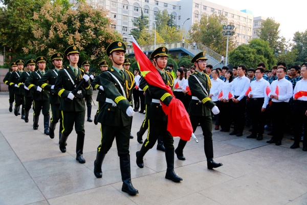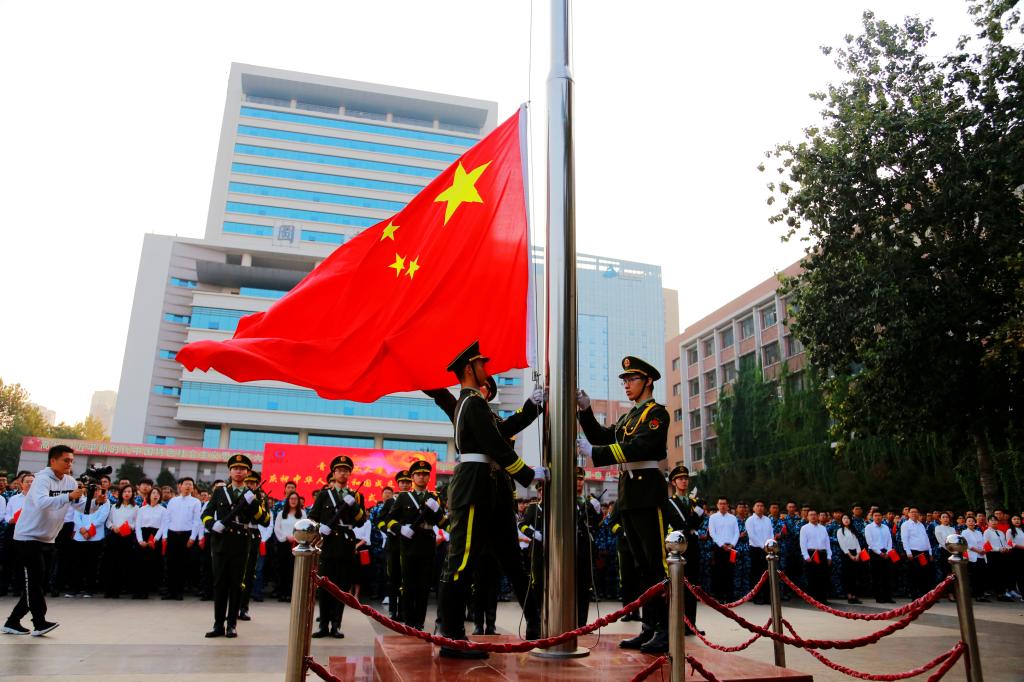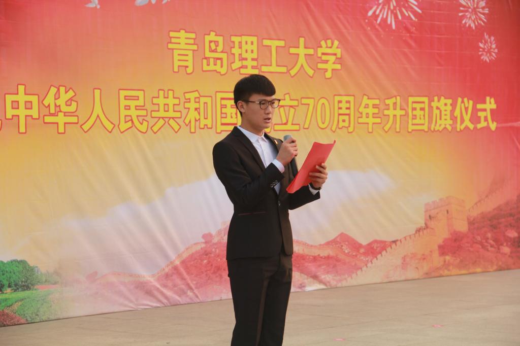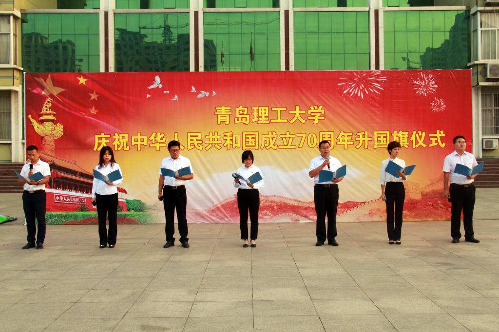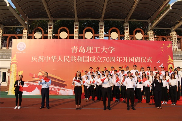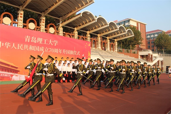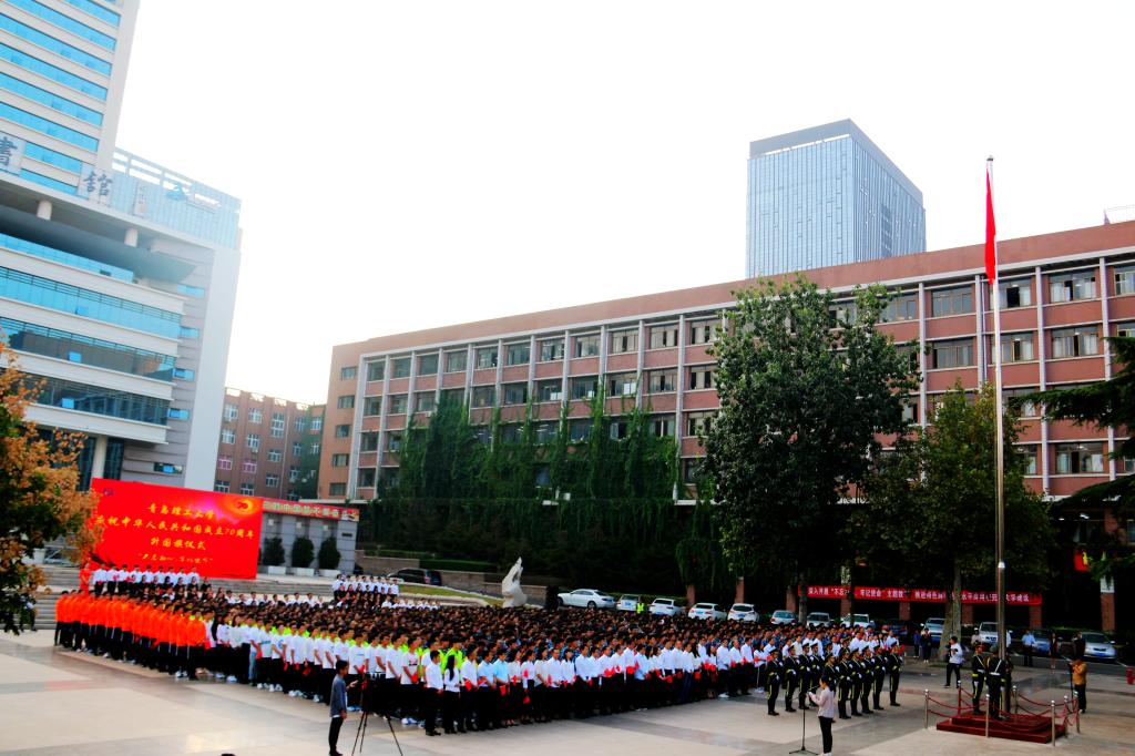早7时,庆祝中华人民共和国成立70周年升国旗仪式在市北校区、嘉陵江路校区、长江路校区、临沂校区同步举行。校党委书记王亚军、校长谭秀森等全体校领导,“庆祝中华人民共和国成立70周年”纪念章获得者王燕、王旭春、毕学军等教授,各学院、部门负责人,全体学工干部、教师代表、学生代表近万人整装列队,汇聚国旗下,共同见证这一庄严时刻。团委书记高洁等主持仪式。