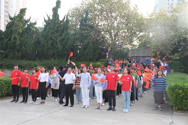 纪念,致敬;缅怀,展望。在烈士纪念日当天、国庆日前夕,师生一同对共和国历史郑重回眸,汲取英烈先辈的中国精神、中国力量。“朋友!中国是生育我们的母亲。你们觉得这位母亲可爱吗?……”“到处都是活跃跃的创造,到处都是日新月异的进步……”在临沂校区,全体学工干部共同朗诵红色经典《可爱的中国》,语调铿锵有力,诵读饱含深情,师生在诵读与聆听之间,重温新中国的峥嵘岁月和光辉历程,讴歌人民英雄不忘初心、牢记使命的执着与坚守、努力与追求。
