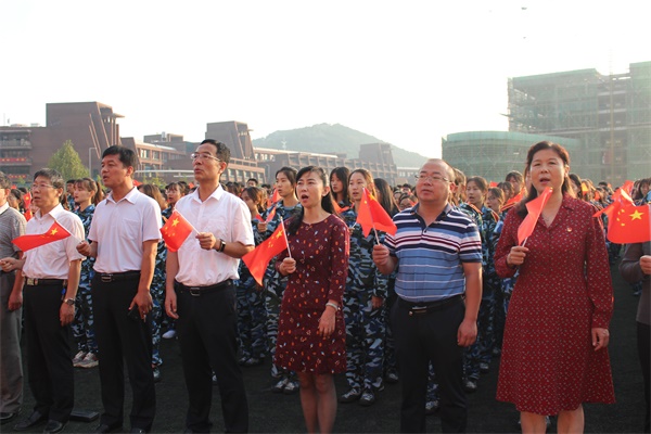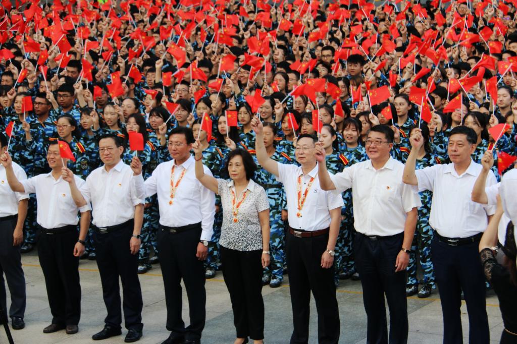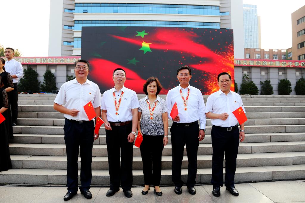 校党委书记王亚军、校长谭秀森等全体校领导与师生共同歌唱祖国
