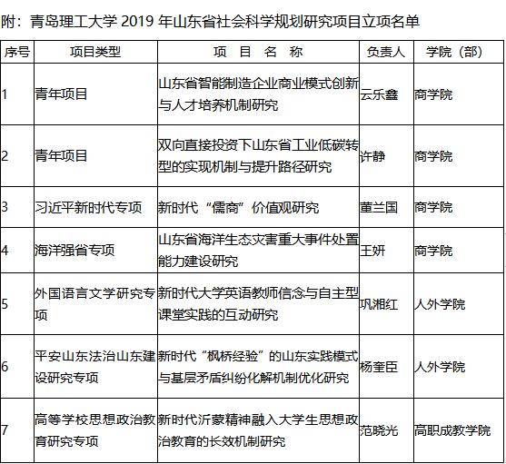 日前,2019年山东省社会科学规划研究项目申报及评审工作已经结束,365完美共获得省社会科学规划研究项目7项,其中青年项目2项、专项项目5项。