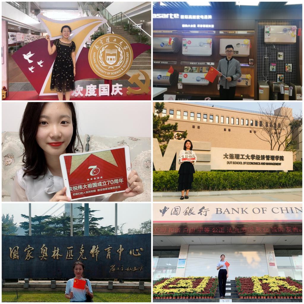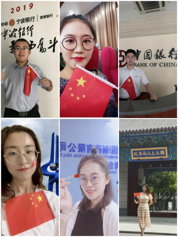 商学院校友共祝祖国70华诞活动,以“我在上海”“我在重庆”“我在安徽”“我在澳门”“我在哈萨克斯坦”等打卡形式,或坚守在工作岗位上,或在出行途中,或在求学路上,他们用自己的方式,喊出心中对祖国母亲的祝福,向中华人民共和国70周年献礼,共同为祖国庆生。他们虽然分布在不同国家,扎根于祖国天南海北,但他们的心从来都和祖国紧紧依偎。他们挥舞着手中的国旗,以饱满的精神状态和最诚挚的情感表达对祖国的热爱之情与美好祝愿。国是千万家,家是最小国,没有国家的强大,哪来个人的幸福?爱国,是流淌在他们血脉之中的深沉情感。