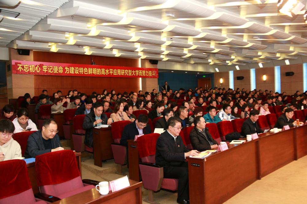 刘鹏照以《坚定制度自信增强行动自觉勇做新时代的奋进者、开拓者、奉献者》为题,从“充分认识坚持和完善中国特色社会主义制度、推进国家治理体系和治理能力现代化的重大意义”“深刻领会中国特色社会主义制度和国家治理体系的显著优势”“准确把握党的十九届四中全会作出的重大决策部署”“全面落实四中全会关于教育的重要内容”四个方面,紧紧围绕学习贯彻习近平新时代中国特色社会主义思想,从深刻领会全会《决定》的重大意义,准确把握中国特色社会主义制度和国家治理体系的科学内涵、基本特征和制度优势,切实坚定制度自信;深刻领会全会部署的目标任务,准确把握坚持和完善中国特色社会主义制度、推进国家治理体系和治理能力现代化的总体要求、总体目标、重点任务和重大举措,切实明确路径和举措;深刻领会全会对做好新时代教育工作提出的新要求,准确把握社会主义先进文化前进方向和社会主义大学的办校规律,切实将社会主义大学的制度优势转化为大学治理的效能,对党的十九届四中全会精神进行了深刻阐释和全面解读。报告主题鲜明、内涵丰富,既有政治高度、理论高度,又有很强的现实性、针对性,对全面准确理解把握全会精神,做好学习宣传贯彻工作,催生推动学校高质量、内涵式发展的强大动力具有重要的指导和推动作用。