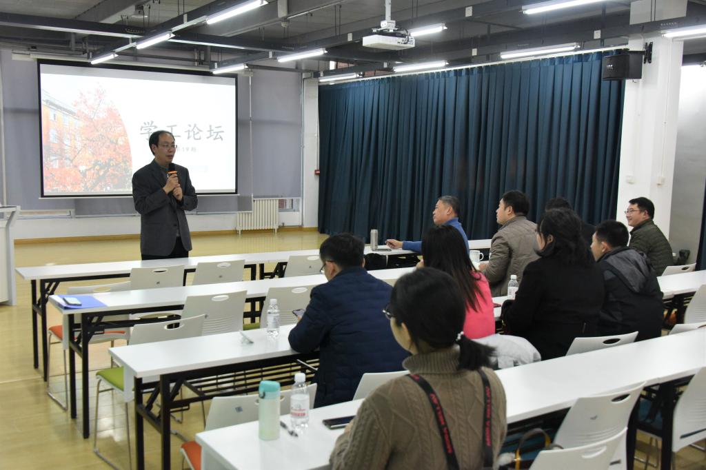随后,刘东锋教授围绕从论证一个观点、描述一种现象、研究一个问题、开展调查分析、如何克服研究之困难等方面,具备理论高度、运用典型案例、探索实施路径,多维度、全方位的对如何提升辅导员的研究能力进行了分享,引起了参会教师的一致共鸣。
