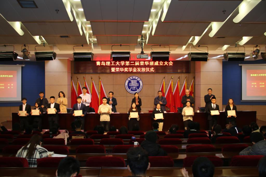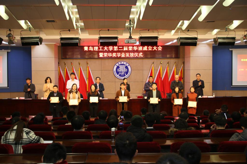12月11日,第二届荣华班成立大会暨荣华奖学金发放仪式在市北校区报告厅举行。校党委常委、副校长沈文青出席仪式并讲话。荣华建设集团有限责任公司党委副书记、工会主席田禾兴,人力资源总监郎洪章,人力资源副总监吕晓莉,学生处处长、创新创业学院院长焦红良,教务处处长田艳兵,合作发展处副处长张国昌参加。仪式由创新创业学院常务副院长李忠晓主持。