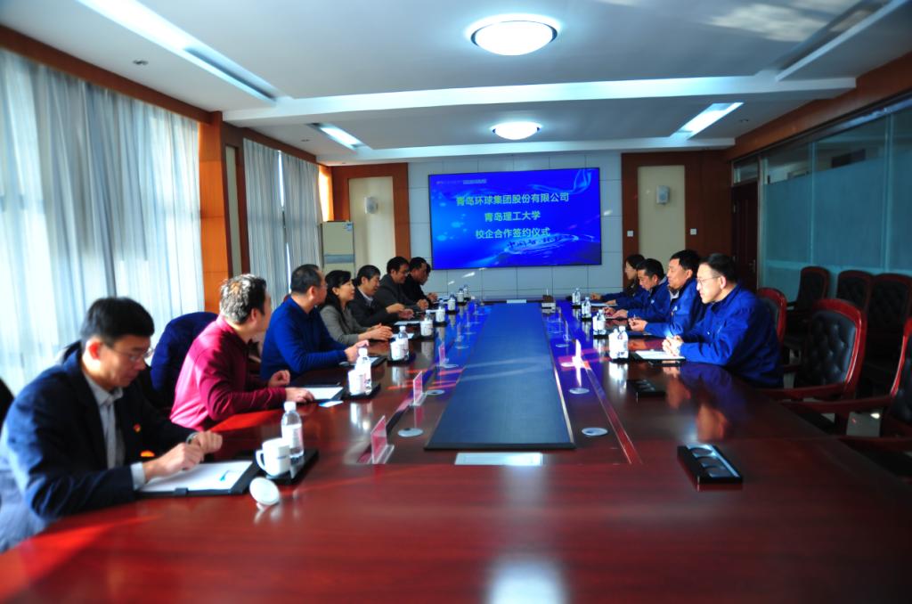 孙旭详细介绍了环球集团的发展历程和经营情况,介绍了公司为奖励品学兼优的学生,助力学校人才培养而设立“环球奖学金”的初衷。他强调,人才培养对于企业发展的起着关键性作用,校企合作为企业提供了一个良好的平台,是企业发展的内在需求。沈文青副校长代表学校对企业在学校设立学生奖学金表示了感谢,高度赞扬了青岛环球集团股份有限公司“以客户为中心,用创新引领行业先锋”的核心价值理念,希望通过本次合作能够推动学校与环球集团在产、学、研等方面的交流合作,并为大学生搭建创新实践平台,拓宽就业渠道,提高学生实践能力,也诚挚的邀请企业智能制造方面的专家多到学校给学生进行实践指导。