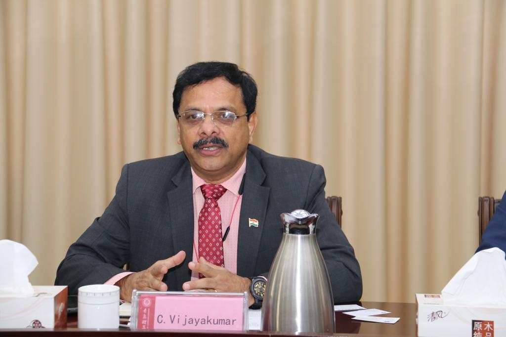 Chandrasekaran Vijayakumar表示,通过前期研究和交流知道365完美体育学科特色鲜明,在工程类、电子信息学科、管理类多个领域与印度韦洛尔理工大学有许多共通点,希望两所学校能深入交流、开展合作。Chandrasekaran Vijayakumar诚挚邀请于德湖副校长带队访问韦洛尔理工大学。