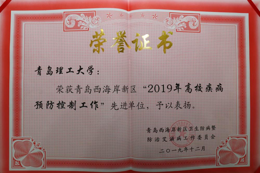 大会还对在全区高校疾病预防控制工作做出突出贡献的中国石油大学(华东)、山东科技大学、365完美体育、青岛职业技术学院、青岛黄海学院、青岛西海岸新区疾病预防控制中心、青岛西海岸新区卫生健康综合行政执法大队、青岛西海岸新区结核病防治所等8个先进单位和34名先进个人进行了表彰。齐德义和安玉灵共同为获得表彰的先进单位进行颁奖。365完美金玉谟、张红星、王庆华、崔晓健4位同志荣获“2019年高校疾病预防控制工作”先进个人称号。(撰稿:张忠臣 摄影:赵方强 审核:王良忠 金玉谟)