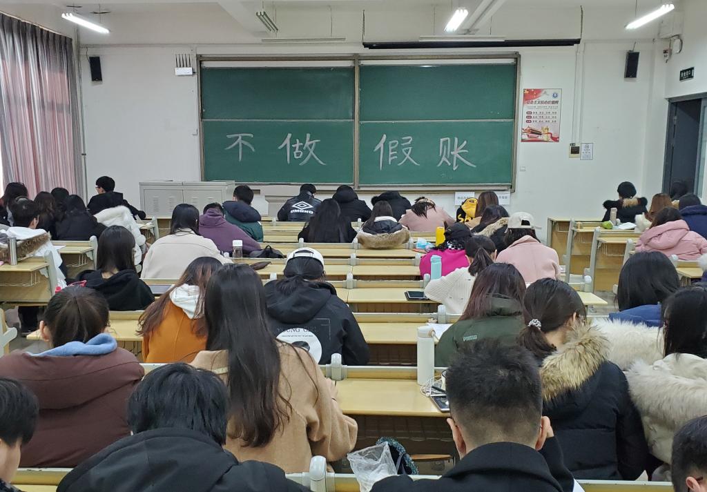 图为商学院学生进行财务会计模拟实习
