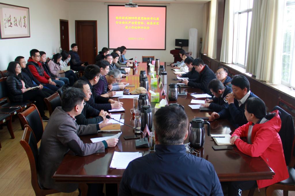 1月9日,临沂校区在办公楼二楼会议室分别召开了2019年度部门、系(部)及管理岗位人员考核暨党组织书记抓基层党建和履行全面从严治党责任述职评议考核会议。学校党委副书记、临沂校区党委书记李国华出席会议并讲话,校区领导班子成员、各党总支(直属党支部)书记、部门系(部)负责人、教师代表参加会议。校区党委常务副书记李国涛主持会议。