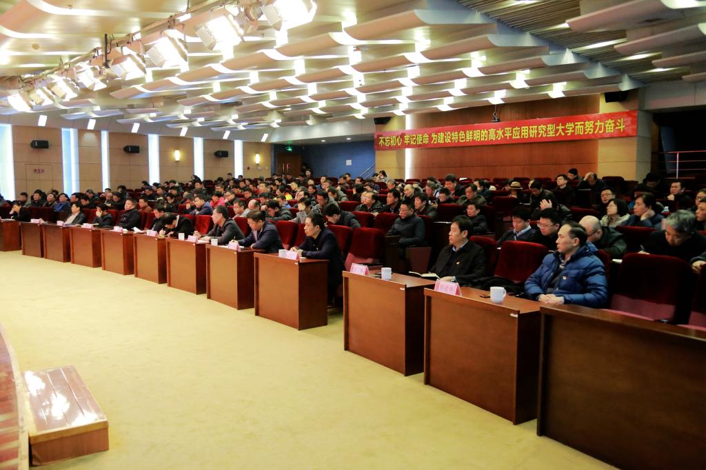 1月13日下午,学校在市北校区图书科技楼报告厅召开“不忘初心、牢记使命”主题教育总结大会。会议深入学习贯彻习近平总书记关于主题教育的重要论述,学习贯彻中央和省委主题教育总结大会精神,回顾总结学校主题教育开展情况和经验成果,对进一步巩固和深化主题教育成果进行安排部署。
