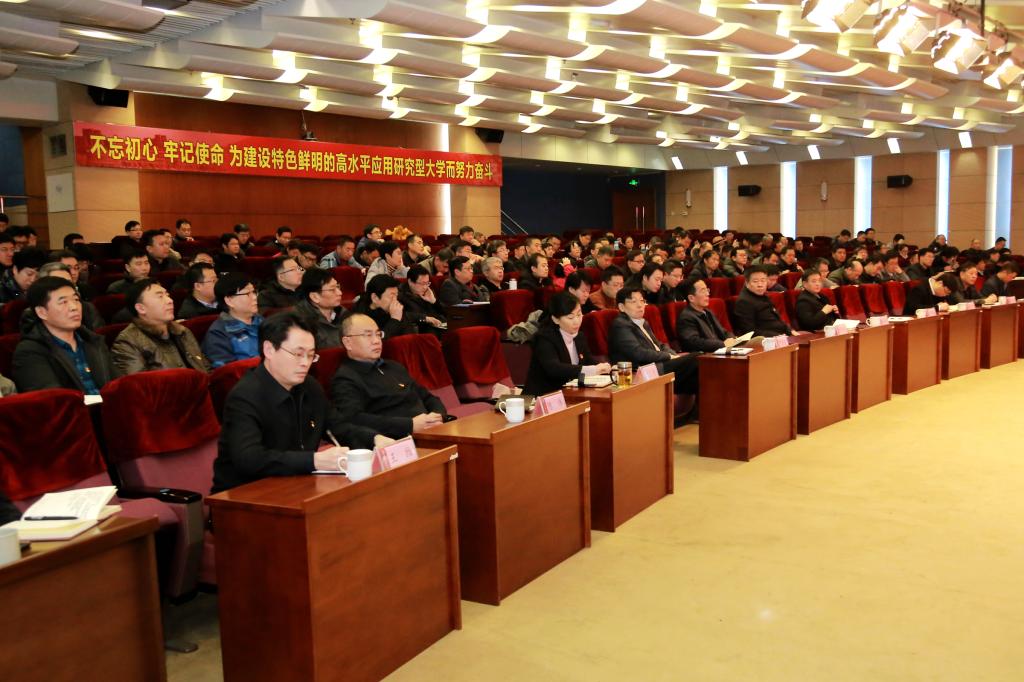 王亚军强调,不忘初心方能行稳致远,牢记使命才能开辟未来。2020年是具有里程碑意义的重要一年,是决胜全面建成小康社会、打赢精准脱贫攻坚战、实现“十三五”规划收官之年。对于学校,也是实施完成主校区战略转移、贯彻新发展理念、实现高质量发展的决战决胜之年,使命更光荣、任务更艰巨、挑战更严峻、工作更伟大。要紧密团结在以习近平同志为核心的党中央周围,深入学习贯彻习近平新时代中国特色社会主义思想,坚定“四个服务”的发展方向,不折不扣落实党中央决策部署和省委要求,高标准高质量抓好各项措施落实,用担当践行使命,用奋斗开创事业,用进取丈量梦想,全面推进“十大工程”建设,奋力谱写特色鲜明的高水平应用研究型大学建设的新篇章。