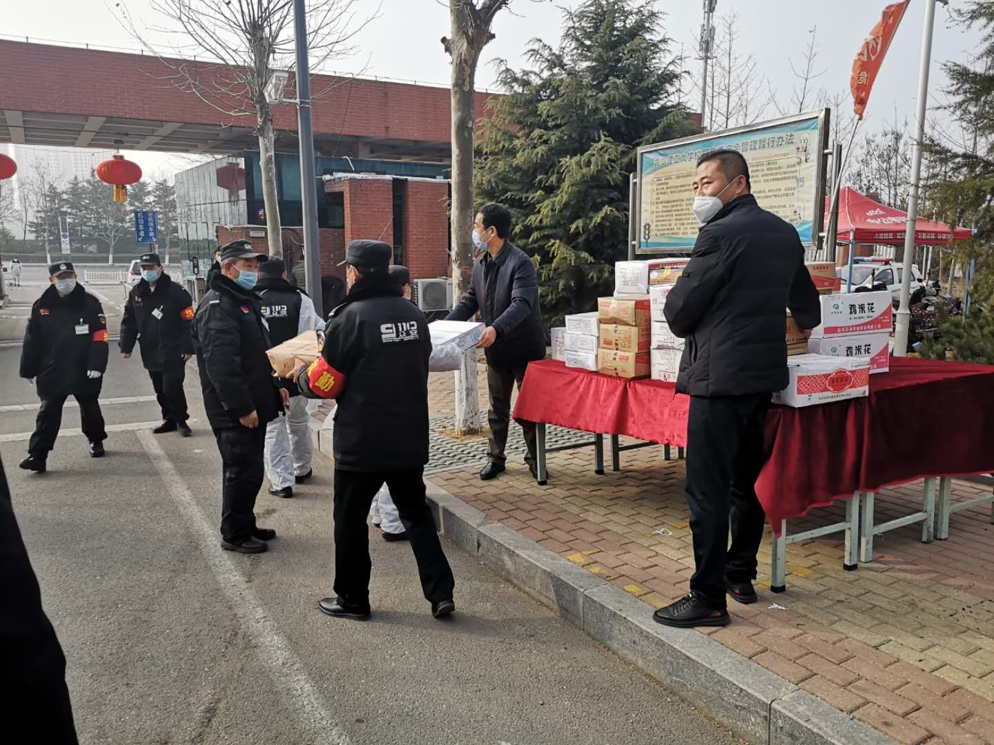 保卫处处长钱均代表安保队员对学校和后勤处表达了感谢。钱均表示,自收到疫情防控命令以来,后勤处积极联系校外各方,争取资源,在资源极度匮乏的情况下,已经为一线安保人员配备了口罩、体温计、额温枪、防护服、酒精等防护物资。此次,又积极联系诸城市一吉木食品有限公司为安保队员送来了1万余元急需的生活物资,给队员们加强营养,全体安保队员一定要再接再厉,在做好自我防护的同时,注重劳逸结合,保持充沛精神,守好校门,把好入校第一关,一定要全力以赴,不辱使命,坚决当好打赢这场疫情防控阻击战的螺丝钉。(撰稿:王国华、刘盛东;审核:乔海涛、钱均)