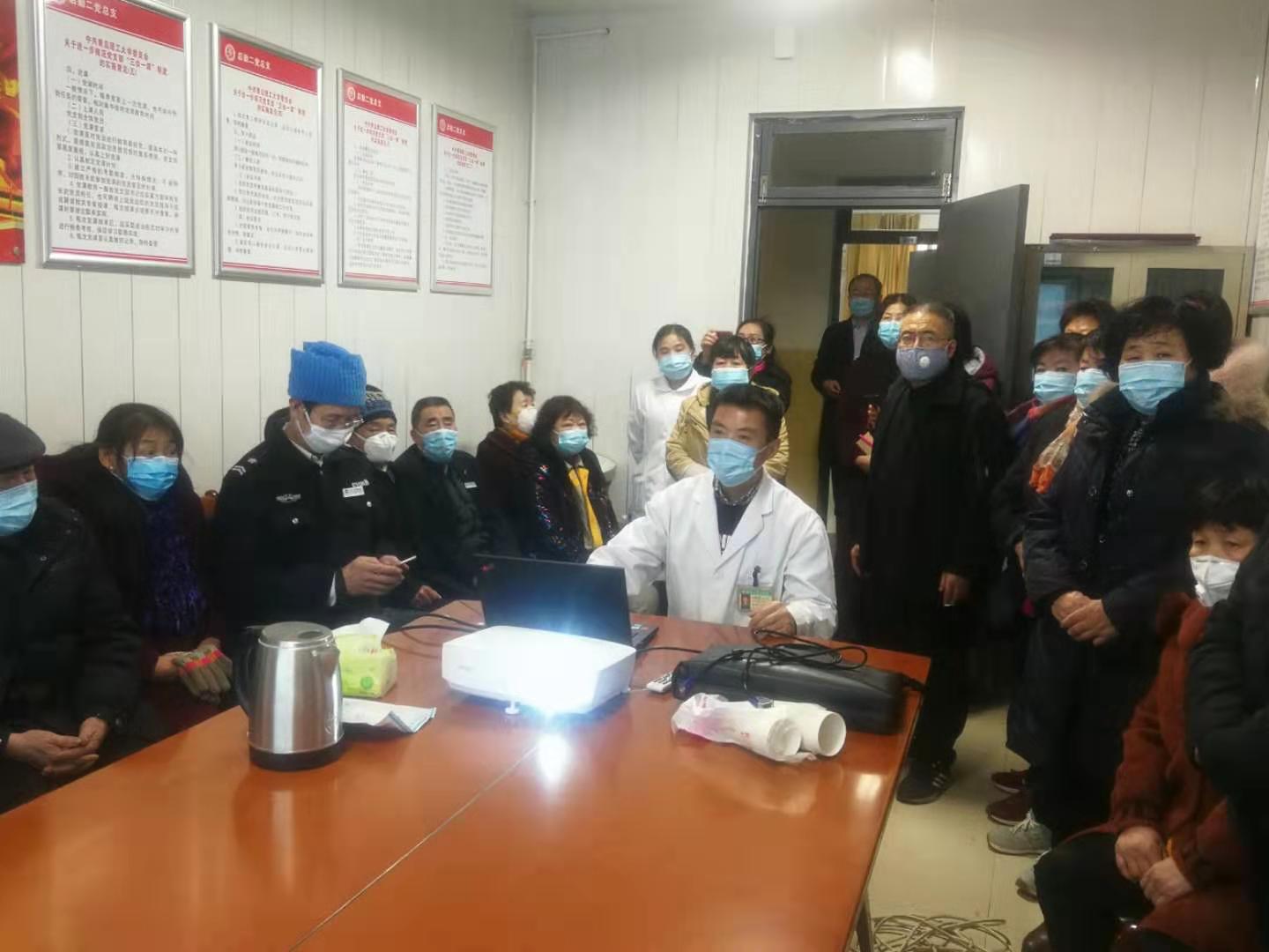 接到动员令,校医院医务人员迅速结束假期,进入战时状态,制定了防控预案、就诊流程等,组织进行专题知识培训,面向全校师生普及科学防控知识、提供医学咨询,为保卫处、物业、后勤工作人员进行了消毒剂配比、手持式体温枪使用等培训指导。