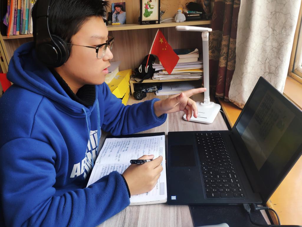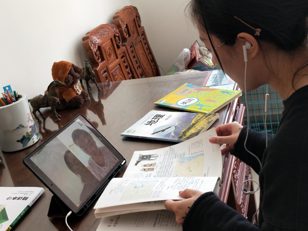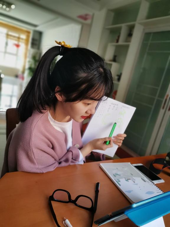 信管181班董一琪在给初一学生辅导语文
