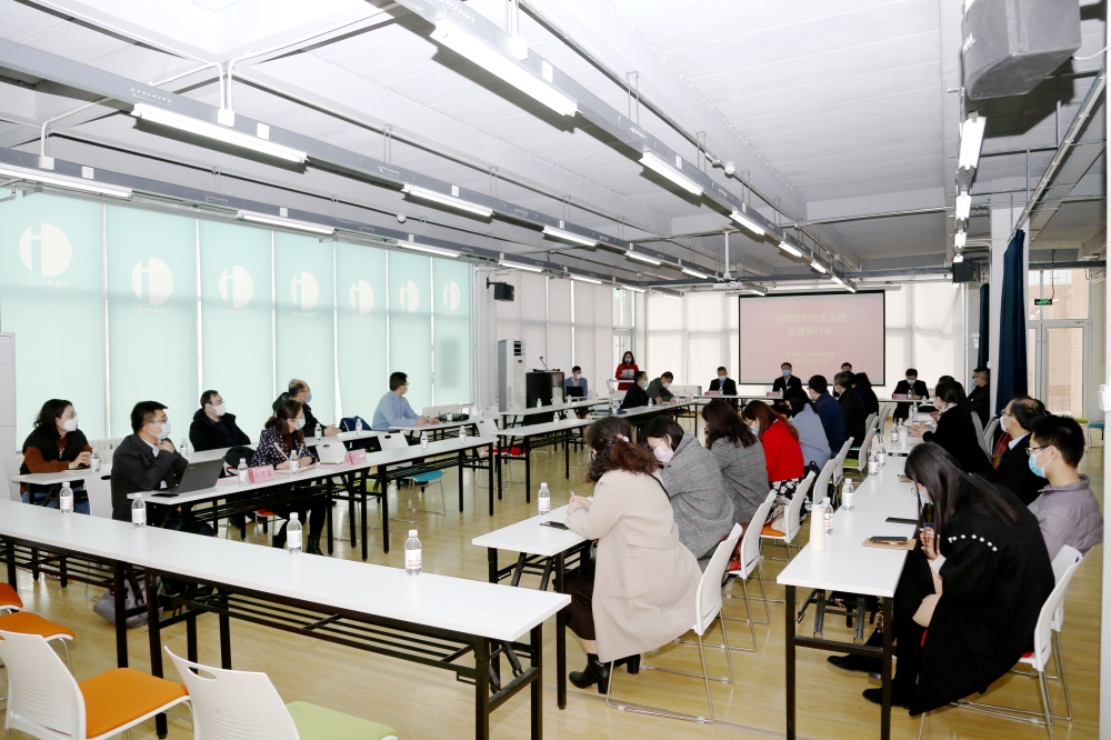 在讨论交流环节,与会人员踊跃发言。相关学院、学术组领导陈国庆教授、巩湘红教授、荀志远教授、云乐鑫教授和青年教师邵志国博士等分别从不同的学科角度,结合各自科研实际和疫情形势,就下一步的社会治理研究进行了深入的探讨交流。