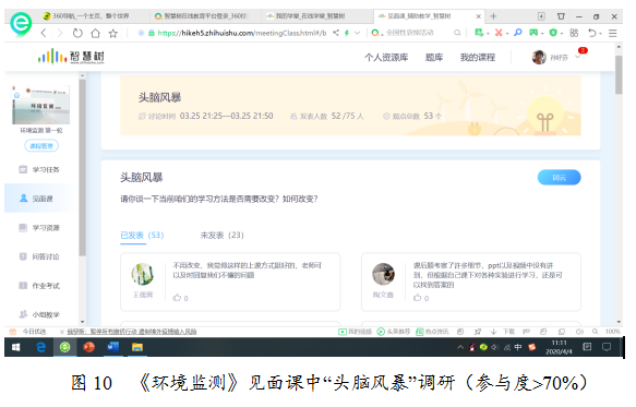 “漫长的假期”并没有使高校老师们停下授课的脚步:根据疫情防控工作需要,针对国家开放的22个在线课程平台2.4万余门在线课程进行有效检索,进行疫情背景下的混合式教学准备与设计;在多次倾听“雨课堂”、“智慧树”、“超星”等教学平台的在线教学培训后,从理论和实践方面努力提高自己的混合式教学重构与设计素养,综合考虑各个平台的优劣,严防课堂“翻车”、“堵车”现象,选择出适宜自己并可留有教学记录的最佳教学平台:首选山东省高校课程联盟的在线课程中的《分析化学》、《环境监测》两门课程的微课视频,适合于学生们在线预习并标记出疑问点;其次是利用智慧树平台的翻转课,可以发布学习任务、学习资料(微课视频、PPT、PDF均可)、加强学生的作业训练、开展直播课堂答疑、签到、抢答、投票、头脑风暴等;还有“长江雨课堂”,可进行习题课答疑与检测,课堂结束后可以回看、回听,有利于学生反复学习;QQ群,也是必不可少的交流工具,可以实现任课教师和学生之间“无缝衔接”,及时收集学生疑问并进行适时答疑,不受课堂时间限制,并可以长期保存学习资料与文件。