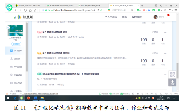确定好学习平台之后,在前期大量教学工作积累的条件下,假期期间精心制作了三门课程《分析化学》、《环境监测》以及《工程化学基础》的“雨课件”。利用365 OFFICE办公软件的PPT录播功能,自录了《工程化学基础》所有微课视频,以便于学生能够及时预习、找出知识中的疑点。完善了三门课程的800余道简答、单选、多选、判断等主、客观练习题,并上传至在线学习网站,常常工作至深夜或者凌晨;准备了完整的课程资源(视频、非视频资源、教学互动、作业练习、讨论区、测试题等),利用MOOC平台,建立专属自己课堂的SPOC学习模式,开设翻转教学,发放学习资料,建立QQ群,利用网络学习平台,建立全方位、立体化的“MOOC+SPOC+翻转教学+雨课堂”“四位一体”多元化“混合式教学模式”。