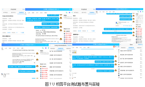 为了提高学生学习积极性,充分发挥学生的主观能动性和创新思维能力,在考量学生学习条件的基础上,大学英语教师们利用各种形式的作业布置平台,如腾讯课堂作业、U校园平台作业、雨课堂限时测试等,给同学们布置了形式多样的课后作业,包括语音、写作、测试、观看视频或慕课等,引导同学们有序开展学习,从听、说、读、写、译等多方面锻炼学生的语言实践能力。