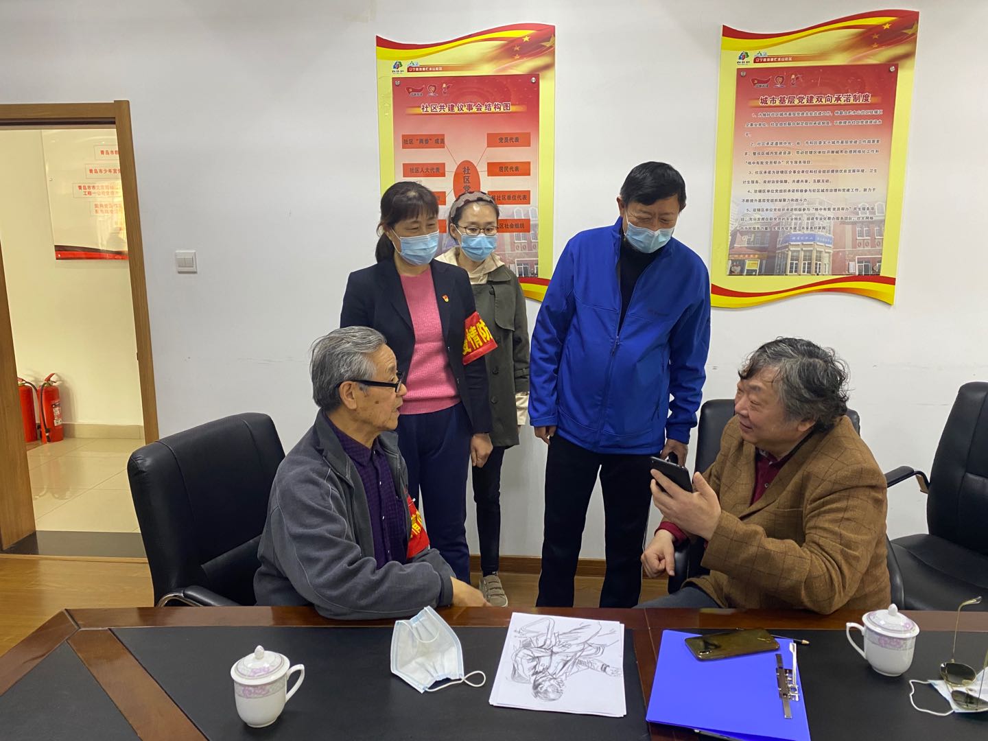 工作组进驻辽宁路街道贮水山社区和镇江路街道海泊河社区以后,引导社区坚持以党建为引领,以问题为导向,将临时党支部建在最前沿,将党员干部沉在最“疫”线。构建“红网领航”、“红色物业”等网格党建工作模式,助推“格中有我 党员帮办”等民生服务项目,架起网格与群众之间的“连心桥”,传递“网格好声音”,扎实推进社区疫情防控和复工复产工作。工作组帮助社区挖掘在此次疫情防控工作中的典型党员人物,立标杆、树典型、学榜样。这里有每天坚守一线工作的73岁退休老党员朱秀兰,这里有以个人名字命名的“海涛帮办工作室”党员帮办沈海涛,这里有身患重病坚持工作,火线递交入党申请书的沈思伟。