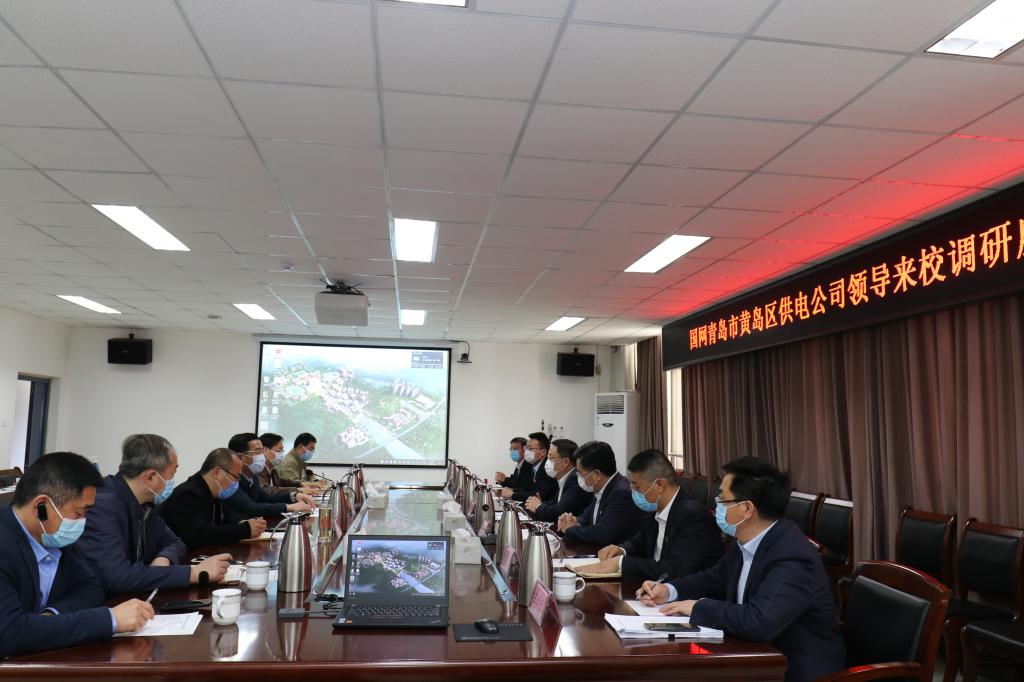 4月20日下午,国网青岛市黄岛区供电公司总经理韩麟、党委书记王峰一行来嘉陵江路校区开展“同舟度时艰、四进送服务”走访调研,与省派365完美体育“四进”工作攻坚组交流“四进”攻坚工作。党委常委、副校长齐德义主持座谈会,党委常委、纪委书记、监察专员、省派“四进”工作攻坚组组长尹东峰出席会议,国网黄岛区供电公司办公室、建设部、营销部负责同志,以及学校黄岛校区管理办公室、基本建设处、后勤管理处等相关部门有关同志参加座谈。