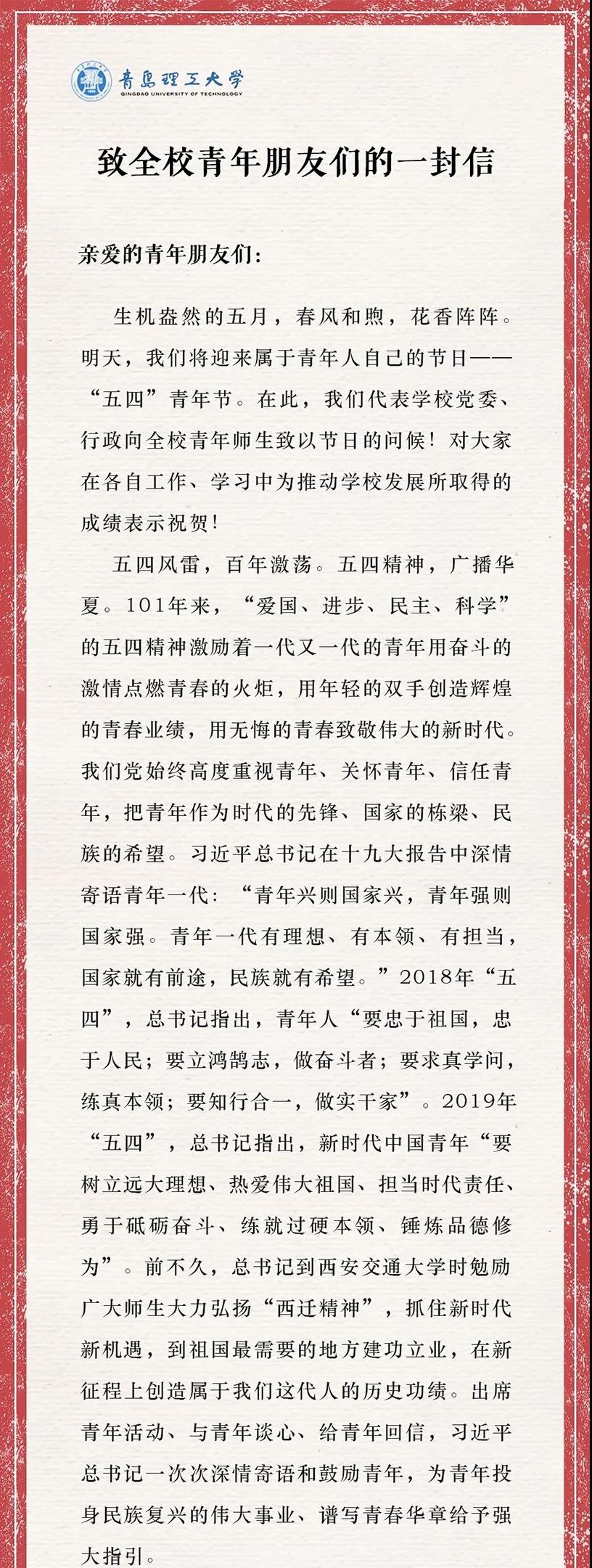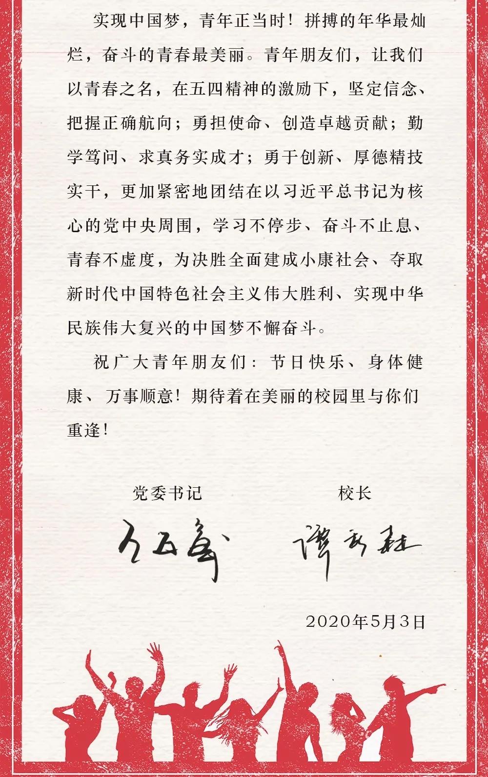 党委书记王亚军、校长谭秀森 致全校青年朋友们的一封信
