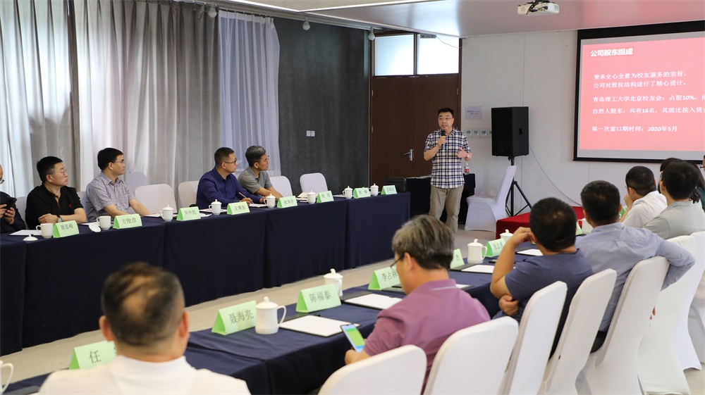 北京校友会副会长、青友礼贤(北京)科技有限公司总经理文凌志主持会议并对公司宗旨、股权情况、商业模式、目标规划、管理系统等基本情况进行了详细地讲解。