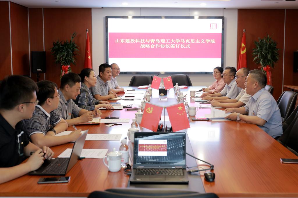 仪式上,播放了山东建投科技企业宣传片,校企双方相关负责人分别介绍了公司业务及经营发展情况、马克思主义学院国企党建研究开展情况。
