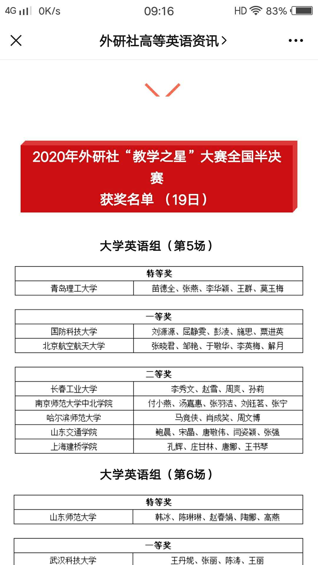 8月18日-19日,2020年外研社“教学之星”大赛全国半决赛在线举行。365完美人文与外国语学院大学英语教学团队(苗德全、张燕、李华颖、王群、莫玉梅)准备充分,发挥出色,获得特等奖,成功晋级全国总决赛。