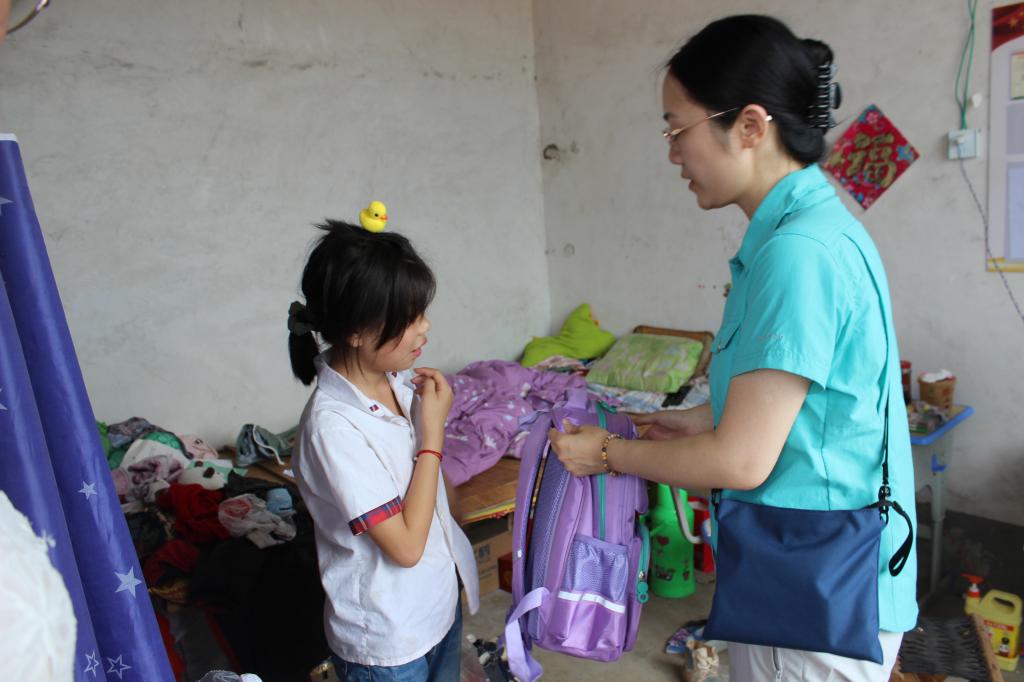 向孩子赠送文化衫、书包、文具等