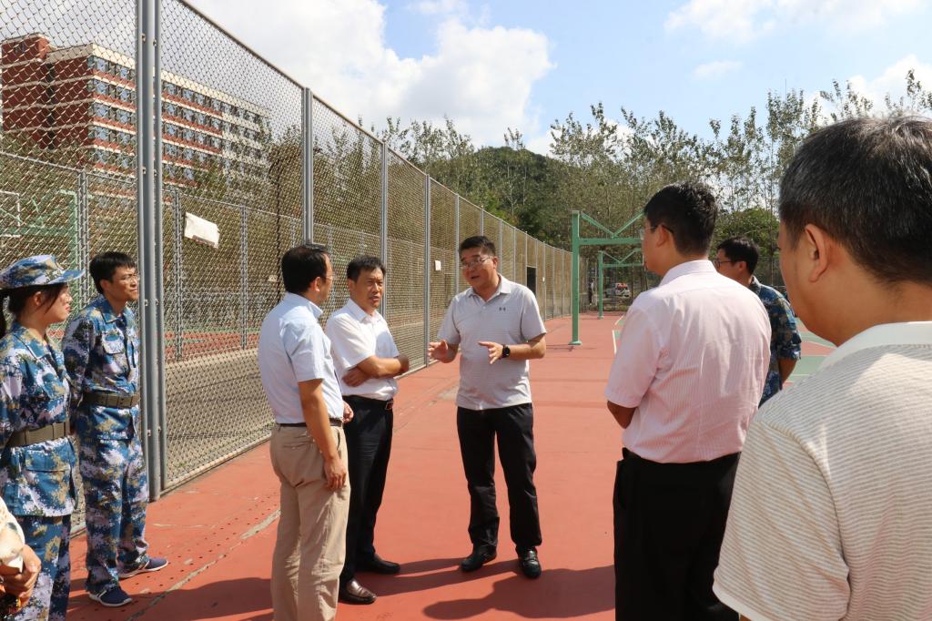 9月22日,校党委书记王亚军,校党委常委、副校长王伟在党委办公室、黄岛校区管理办公室、学生处、团委、武装部等有关单位负责人陪同下,来到嘉陵江路校区军训现场,察看2020级新生军训情况,看望慰问承训教官、参训新生和一线工作人员。