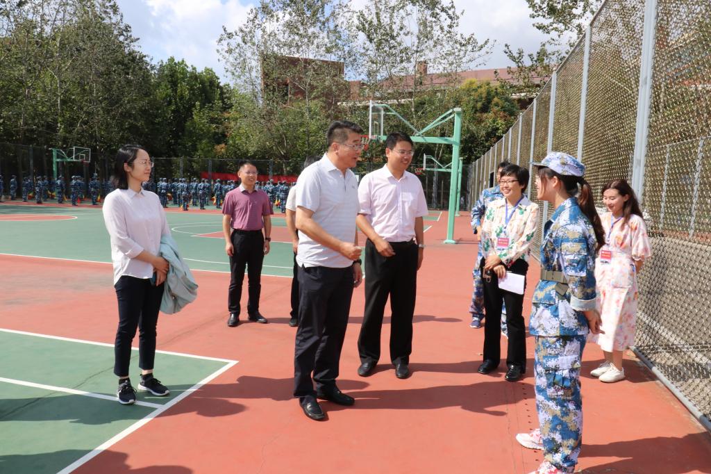 校党委书记王亚军带队现场察看新生军训情况