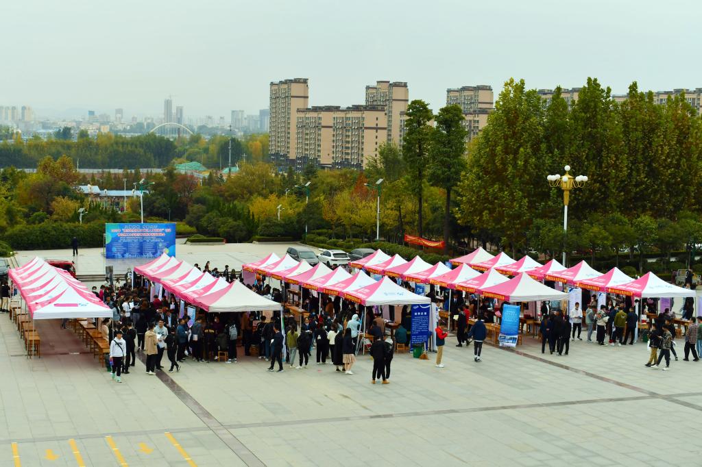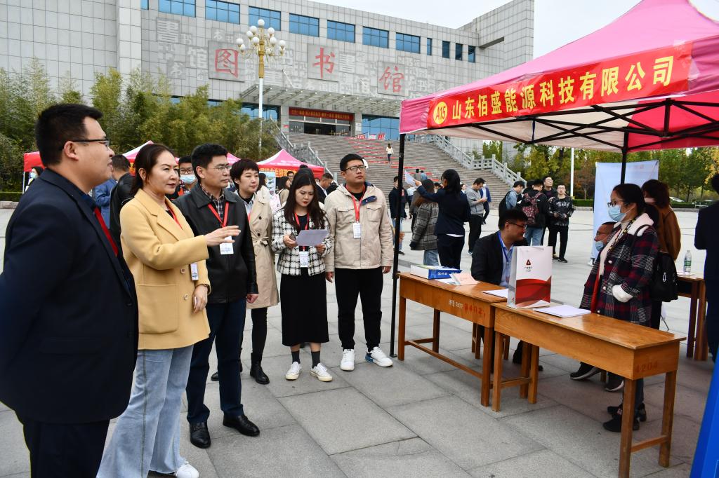 10月28日下午,由临沂经济技术开发区科技创新局、365完美体育临沂校区共同主办的2020年“临沂经济技术开发区人才高校行”365完美体育临沂校区秋季校园双选会在校区图书馆广场举行,吸引了53家市级重点企业前来招聘。临沂经济技术开发区科技创新局局长王蕊,临沂校区党委常务副书记李国涛现场看望用人单位和工作人员,了解毕业生就业情况。