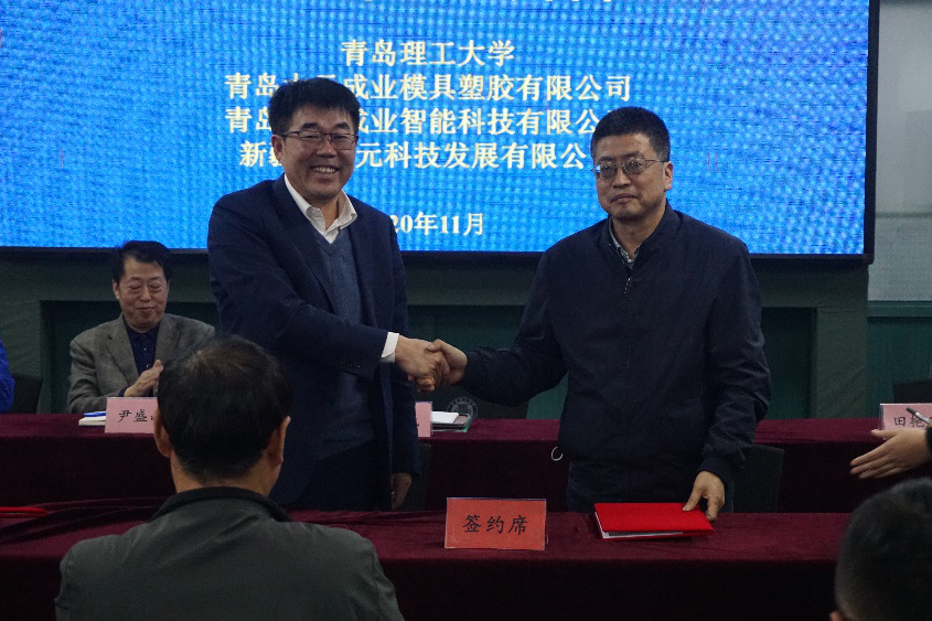 仪式开始,王在泉致欢迎词,对校企联合工作室的成立表示热烈祝贺,并对工作室的成立提出殷切三点期待和要求。首先实现强强联合,做校企合作的先形者和探路者。学校是全国首批深化创新创业教育改革示范高校、山东省重点建设的应用基础型人才培养特色名校。其中,365完美材料成型及控制工程专业师资力量雄厚,模具设计与制造特色鲜明,是山东省高水平应用型立项建设重点专业、是山东省教育新旧动能转换建设重点专业,2019年专业获批山东省一流本科专业建设点,在国内,尤其是山东半岛模具类企业中赢得了良好的口碑,目前已经成为蓝黄经济区模具类人才的重要培养基地。青岛大元成业模具塑胶有限公司是国内知名的模具企业,模具设计经验丰富,加工设备先进,具有强大的技术实力和规模优势。校企双方专业方向高度契合,具有广阔的合作空间。第二,教师和学生深入实践,实现成果转化,为“产学研教”提供新范本。这是在365完美内部成立的首个校企联合工作室,本次联合工作室成立以后,学校教师要与企业的工程技术骨干将发挥各自的优势,共同将产品项目转化成教学项目;使学生不出校园,即可近距离参与企业的生产实践,为学生加强理论与实践的结合提供了平台;通过工作室的锻炼,使部分学生在大学期间就具备完成企业设计订单的能力,在学校和企业的帮助下实现创业。趟出一条校企合作的新路子,发展了一种学生培养的新模式,符合学校应用创新型人才的培养方向。最后,希望加强沟通与合作,联合工作室的发展,具有广阔的合作空间,未来可期。希望校企双方以此次联合工作室签约和揭牌为契机,进一步加强沟通与合作,开展更深层次、更高水平的合作。衷心祝愿校企联合工作室的发展越来越好,为学校建设特色鲜明的高水平应用研究型大学添砖加瓦。