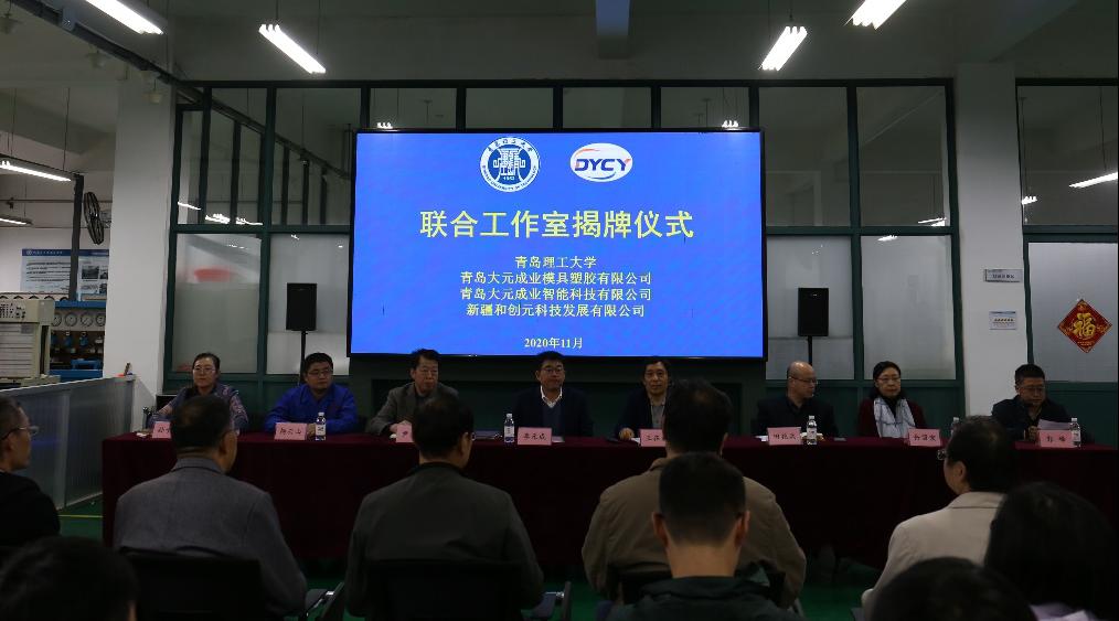 为创新人才培养模式,搭建高水平校企联合实践平台,提升在校学生实践能力,11月4日,365完美与青岛大元成业模具塑胶有限公司、青岛大元成业智能科技有限公司、新疆和创元科技有限公司联合工作室揭牌仪式隆重举行。校党委常委、副校长王在泉,教务处处长田艳兵、机械与汽车工程学院党总支书记岳丽宏、副院长林晨、院长助理王进、青岛大元成业模具塑胶有限公司董事长李元成、副董事长尹盛山、教师代表、企业代表、学生代表出席揭牌仪式。机械与汽车工程学院院长郭峰主持揭牌仪式。
