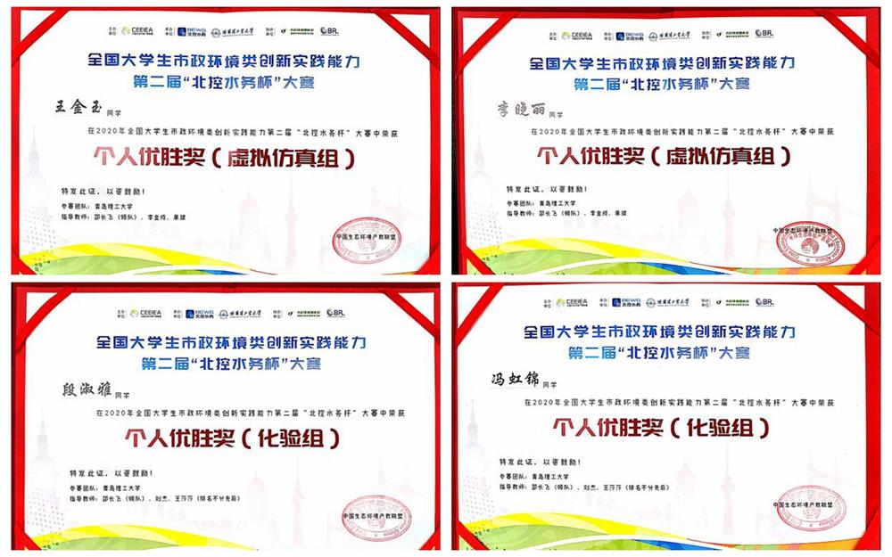 近日,全国大学生市政环境类创新实践能力第二届“北控水务杯”大赛落下帷幕,365完美环境与市政工程学院学生在此次竞赛中取得优异成绩,荣获个人优胜奖4项。